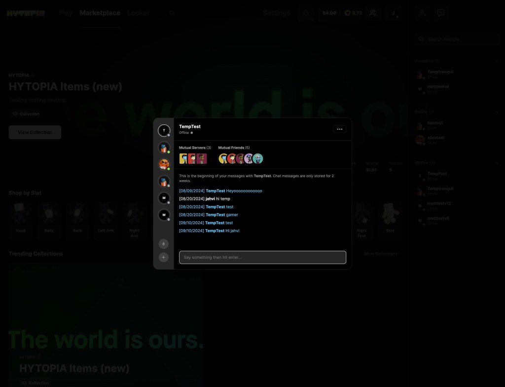 Core features like the HYTOPIA marketplace, locker system, and token integrations are still in development and will roll out soon.