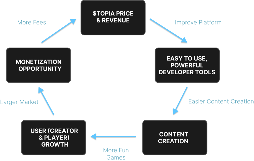 We use the buzzword “Flywheel” a lot when we’re speaking to our community. The flywheel is essentially the growth cycle of the platform. We use the concept of a “flywheel” to describe how different parts of the HYTOPIA ecosystem feed into each other, creating momentum. This self-sustaining growth cycle will help ensure long-term success by continually adding value for both players and creators.