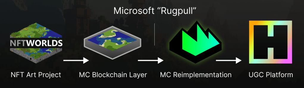 Then, it came. Microsoft, with whom we had been in close communication, went dark for weeks. We later learned they were updating their EULA to block blockchain from their platform. We were blindsided and disappointed. We had supported them by providing intros to our OpenSea connections to remove scam projects using Minecraft IP. We really felt we were building a relationship that could turn into a partnership, which would have inevitably lead to the imminent success of the entire project.