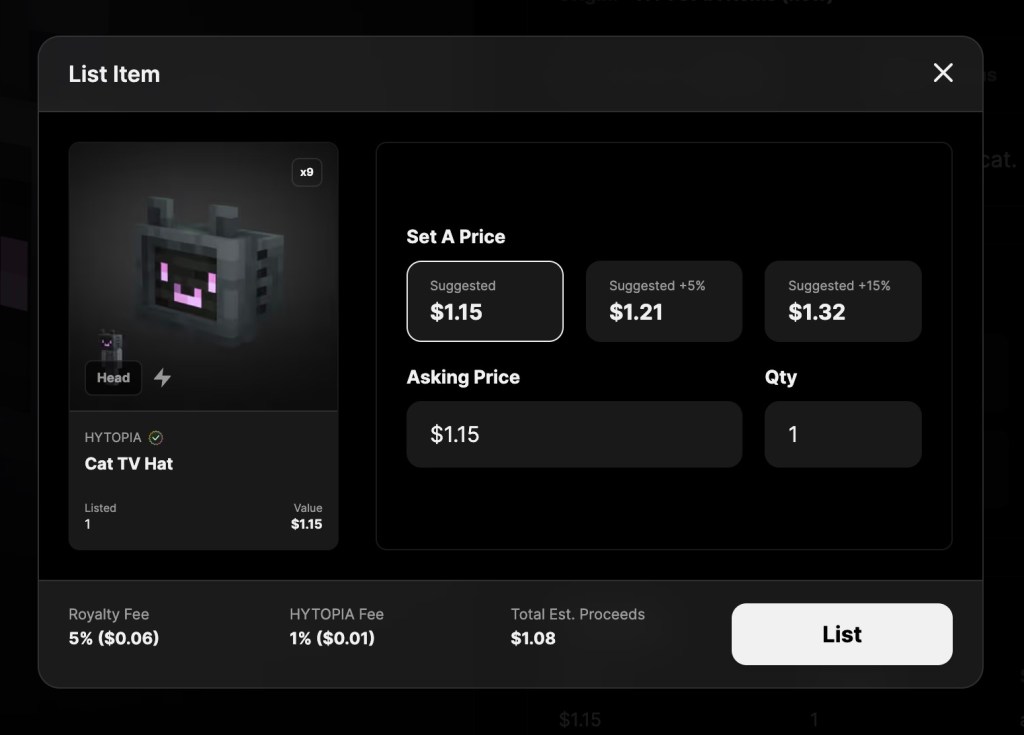Built-In Marketplace – Allow users to buy and sell in-game cosmetic.